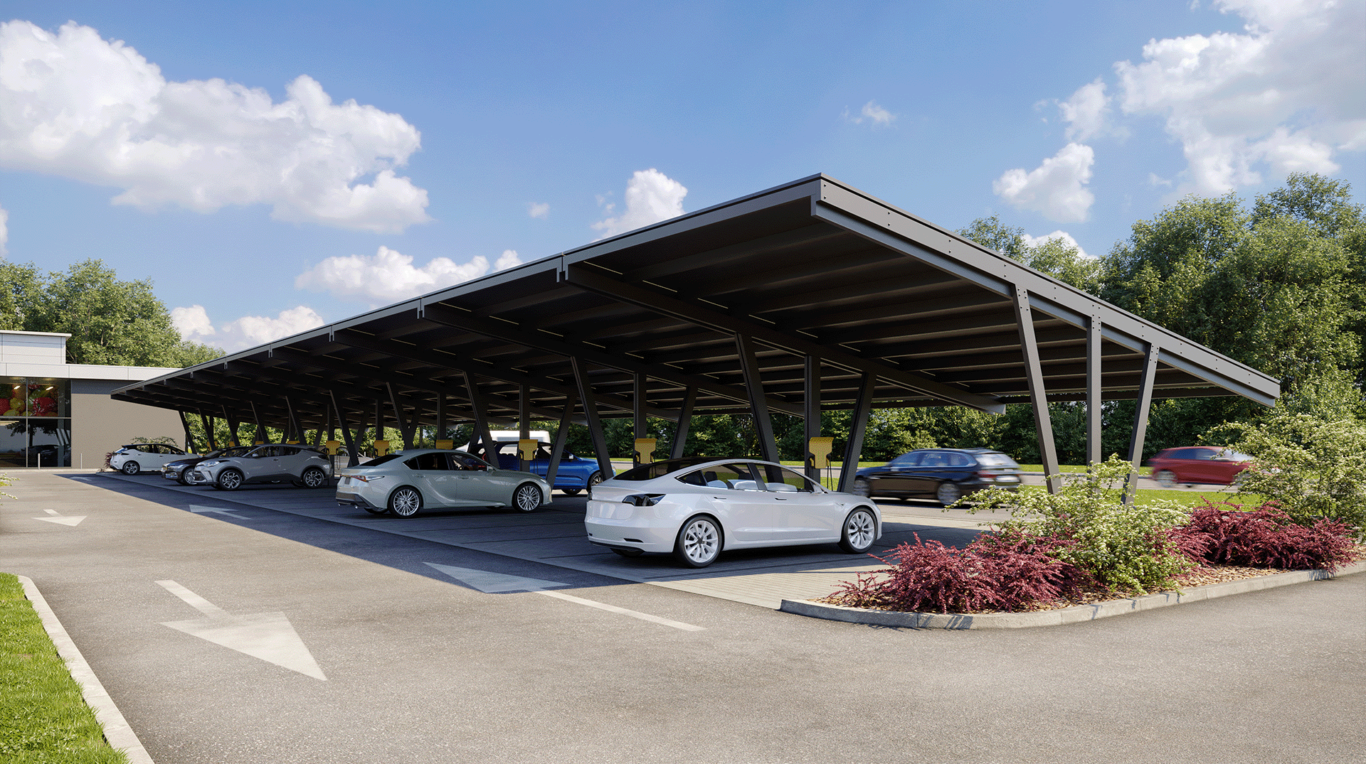 Dédiés aux investissements de grande envergure, avec la possibilité de connecter les carports de manière modulaire en sections, créant ainsi de grandes installations.